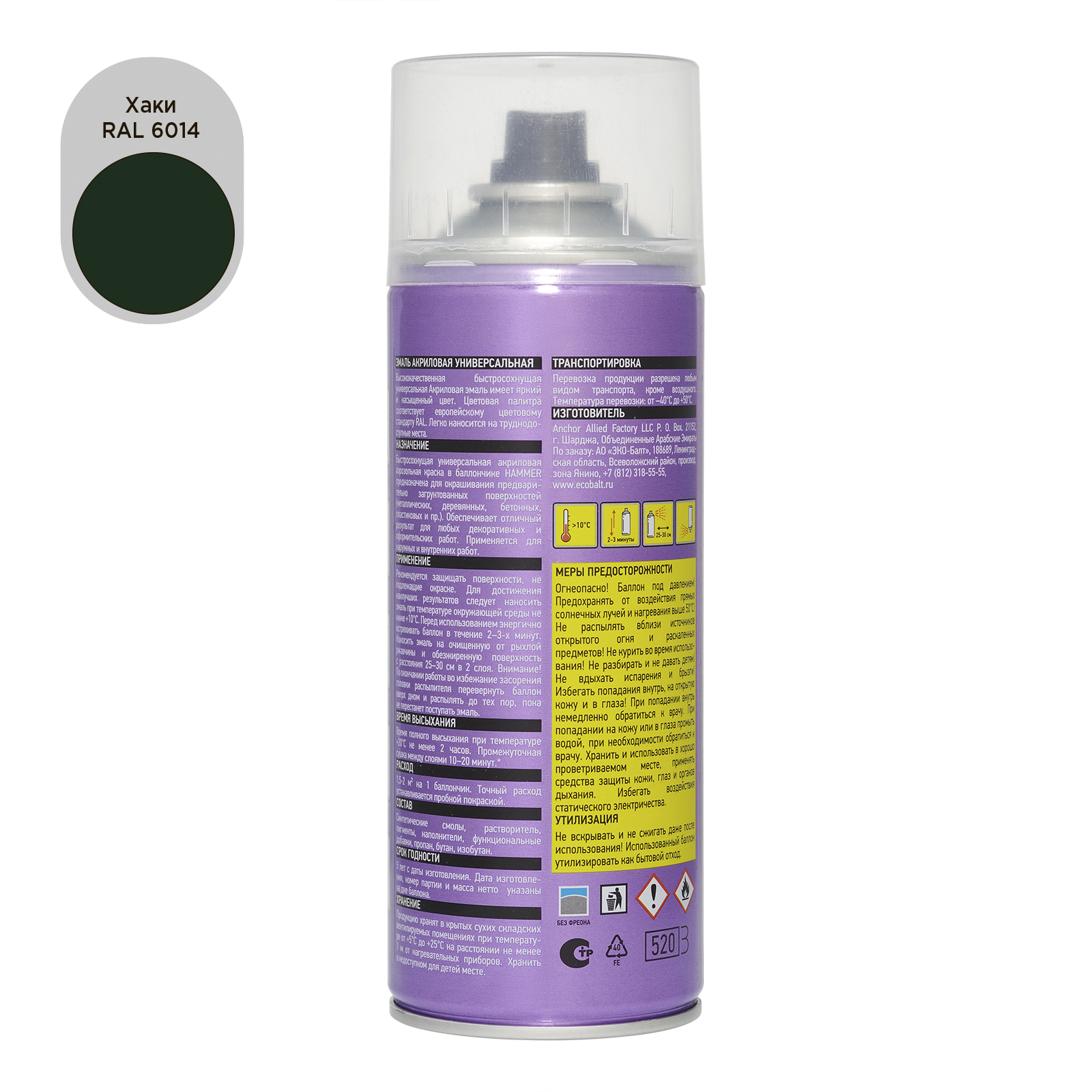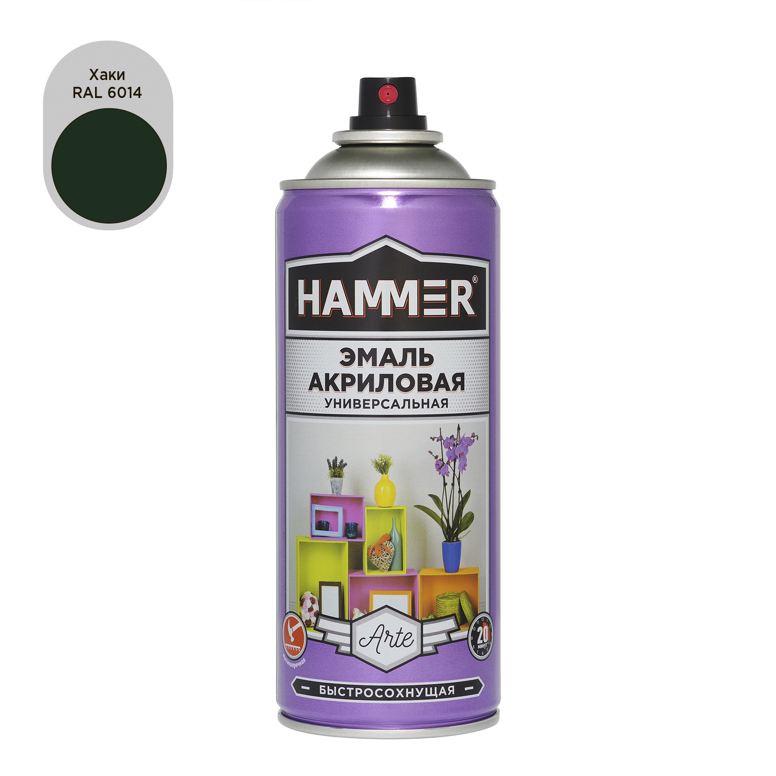 Высококачественная быстросохнущая универсальная акриловая эмаль HAMMER имеет яркий и насыщенный цвет. Цветовая палитра соответствует европейскому цветовому стандарту RAL. Аэрозольная краска в баллончике HAMMER легко наносится на труднодоступные места.