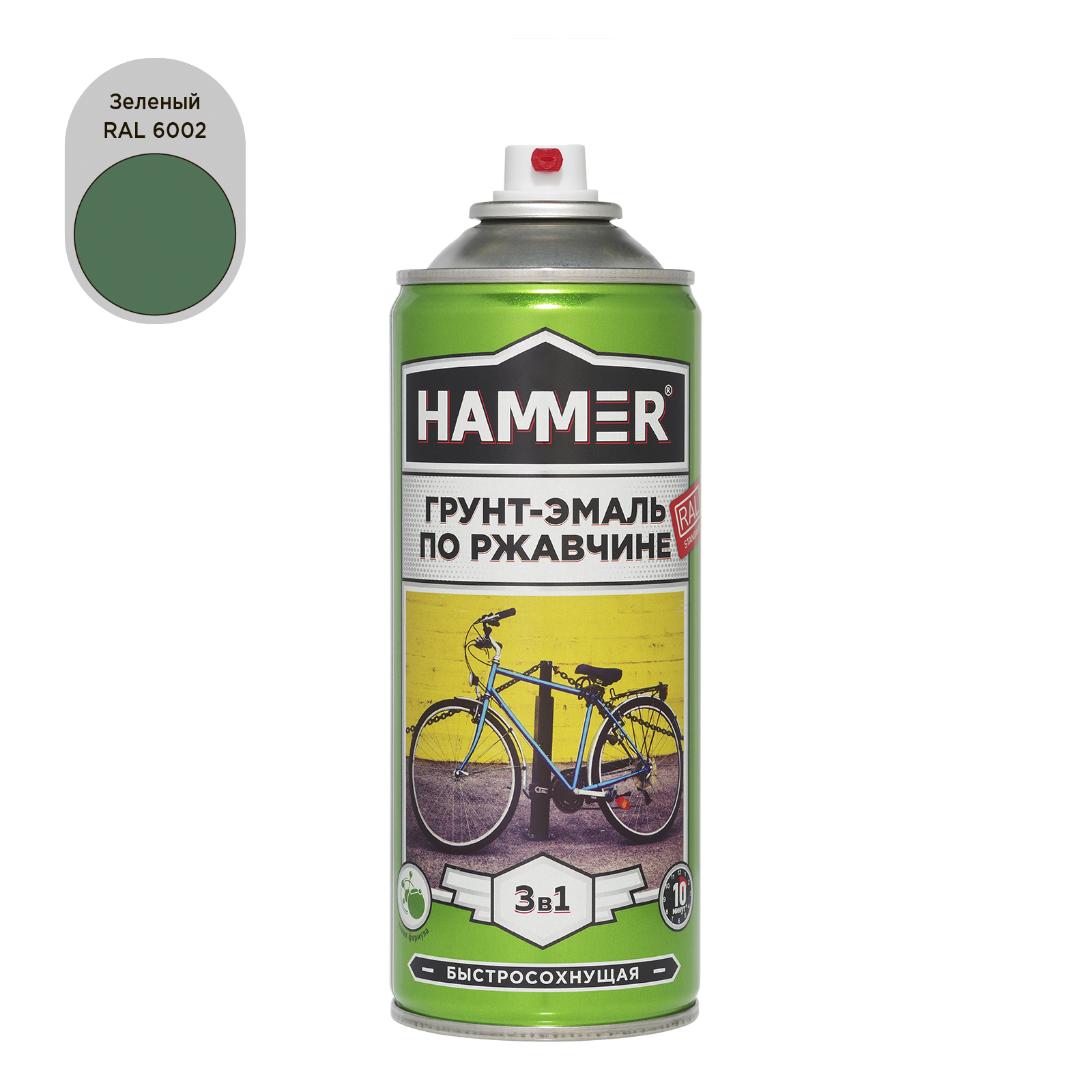 Синтетическая однокомпонентная быстросохнущая грунт-эмаль HAMMER аэрозоль для наружных и внутренних работ по окрашиванию изделий из сплавов чёрных металлов, подверженных коррозии и уже заржавевших.