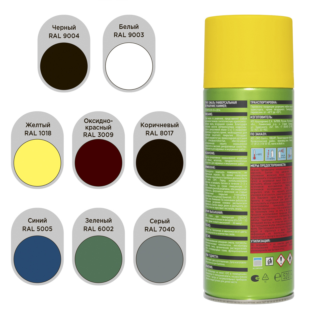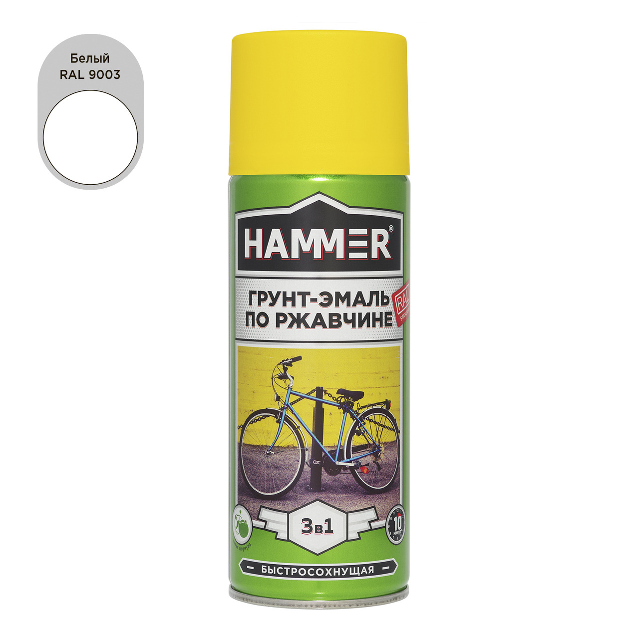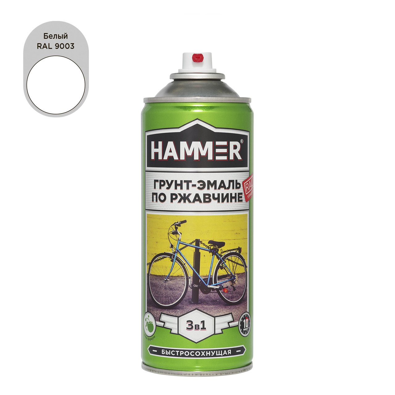 Синтетическая однокомпонентная быстросохнущая грунт-эмаль HAMMER аэрозоль для наружных и внутренних работ по окрашиванию изделий из сплавов чёрных металлов, подверженных коррозии и уже заржавевших.