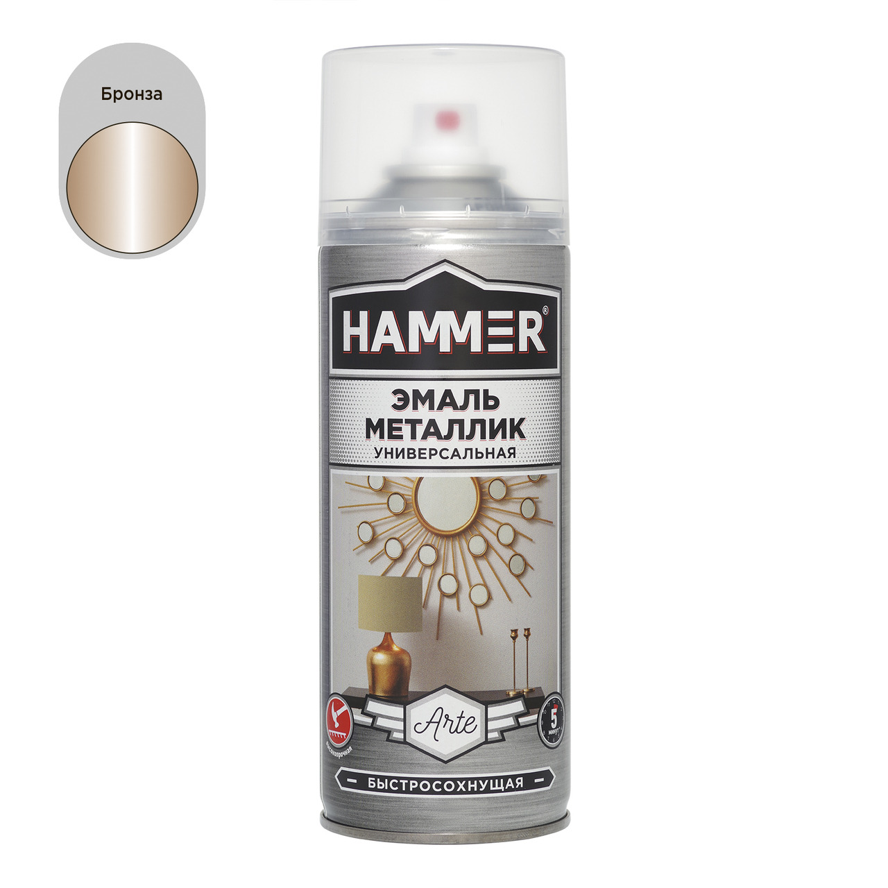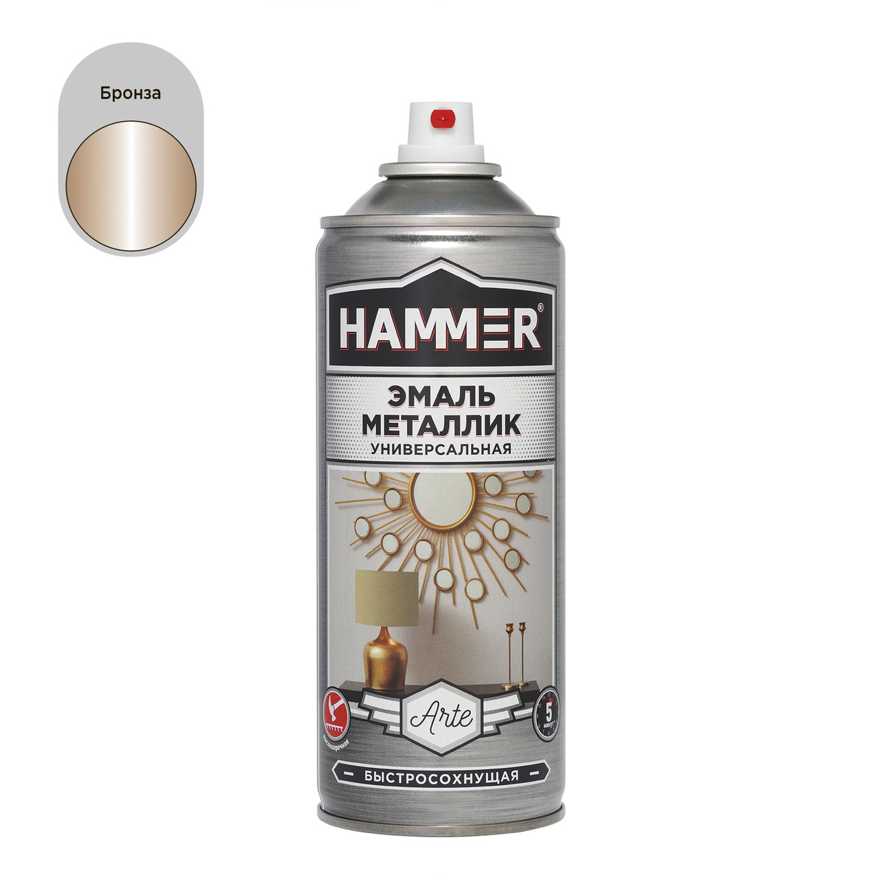 Высококачественная быстросохнущая универсальная эмаль HAMMER имеет яркий и насыщенный металлический блеск. Легко наносится на труднодоступные места.