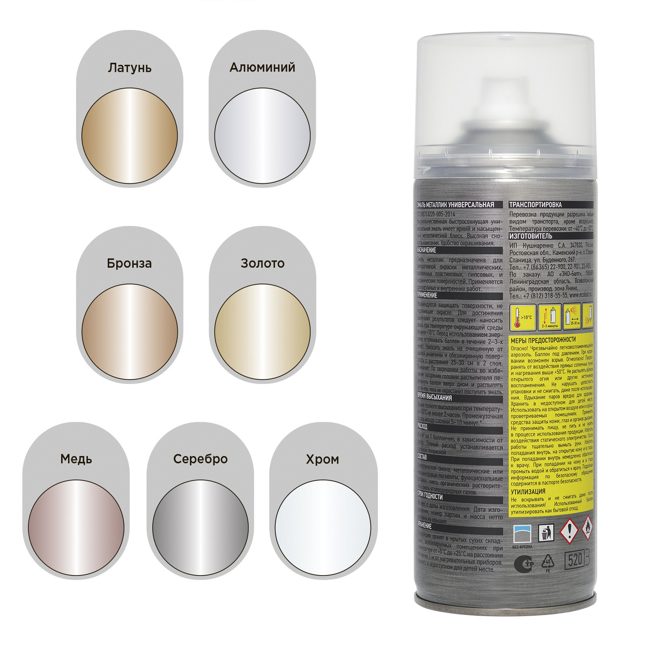 Универсальная быстросохнущая эмаль для наружных и внутренних работ по окраске металла, дерева, пластик, гипса, керамики. Имеет яркий и насыщенный металлический блеск.