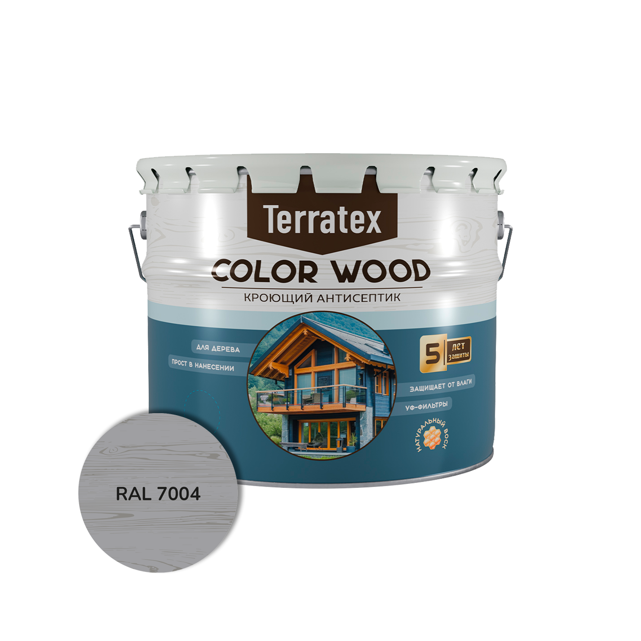 Terratex COLOR WOOD — влагостойкий кроющий антисептик на натуральной восковой основе для долговечной защиты древесины.