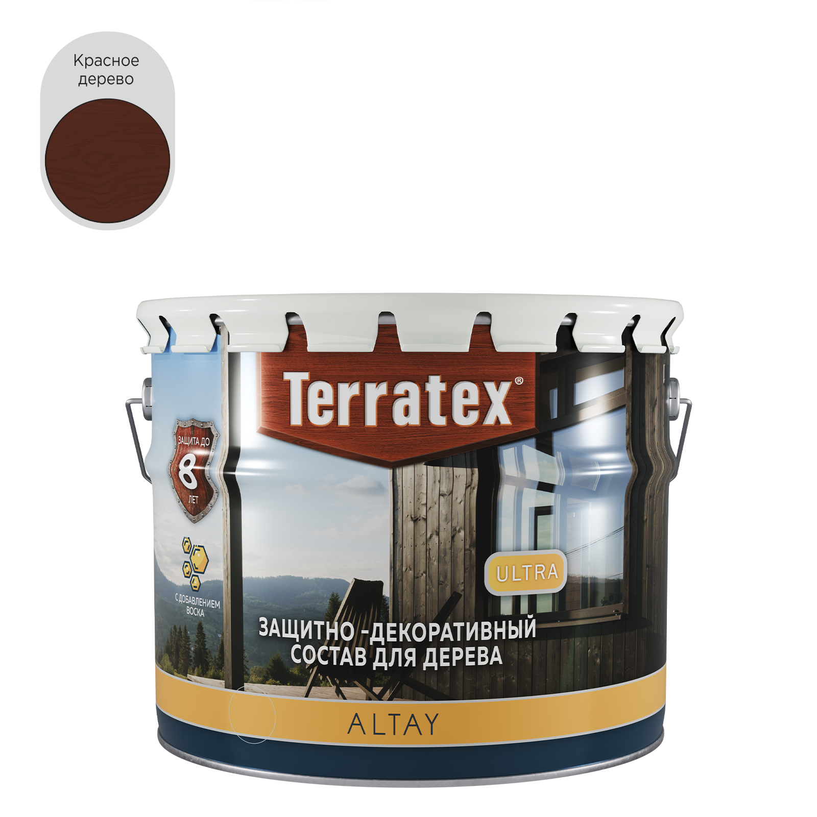 Деревозащитный декоративный воскосодержащий состав Terratex ULTRA Altay предназначен для наружных и внутренних работ. Состав образует на поверхности древесины воздухопроницаемое биозащитное влагоотталкивающее эластичное полимерное покрытие. Благодаря содержанию УФ-абсорбирующих материалов состав обеспечивает высокую степень защиты деревянных изделий, эксплуатирующихся в жестких погодных условиях. Сохраняет и усиливает текстуру древесины и придает ей желаемый декоративный оттенок.
