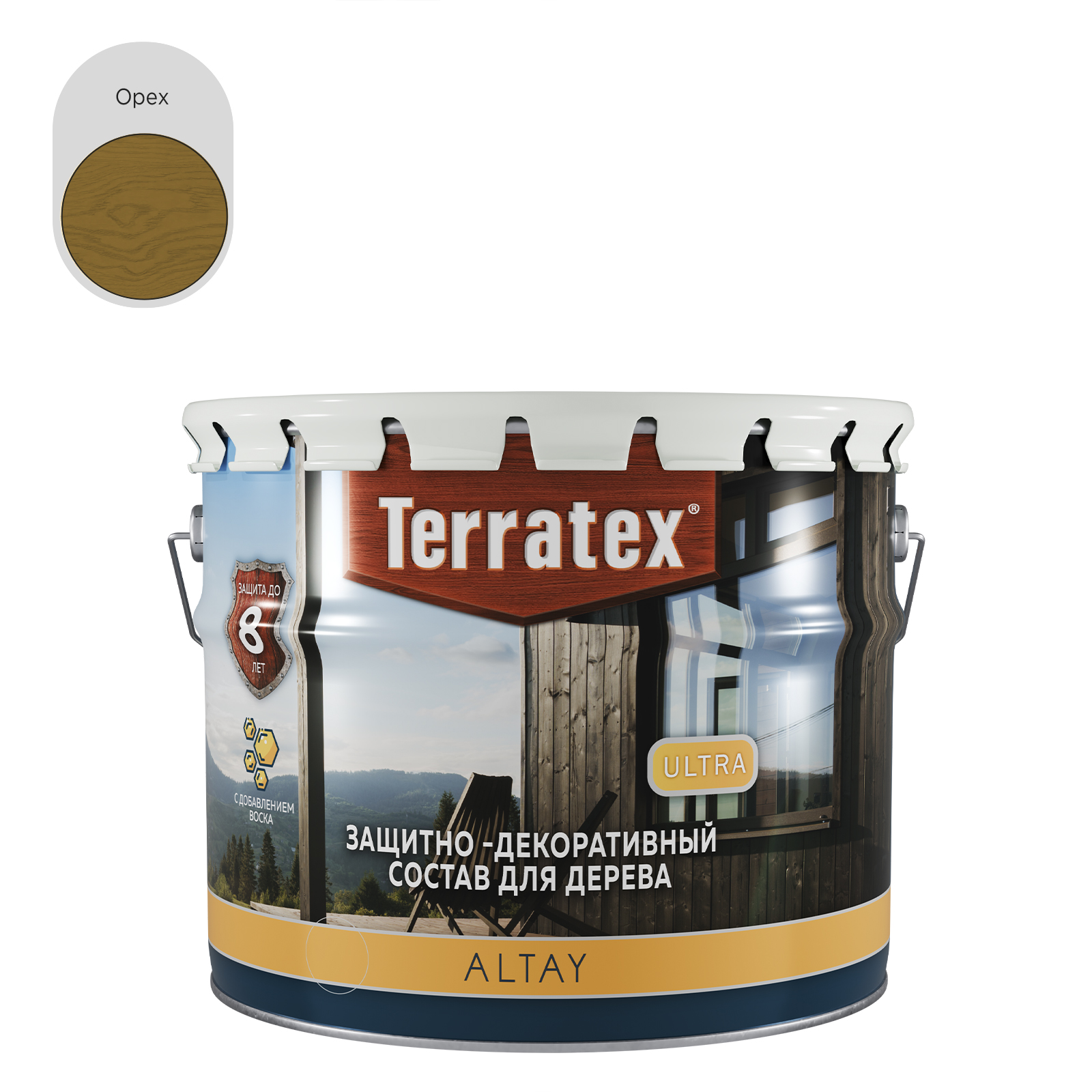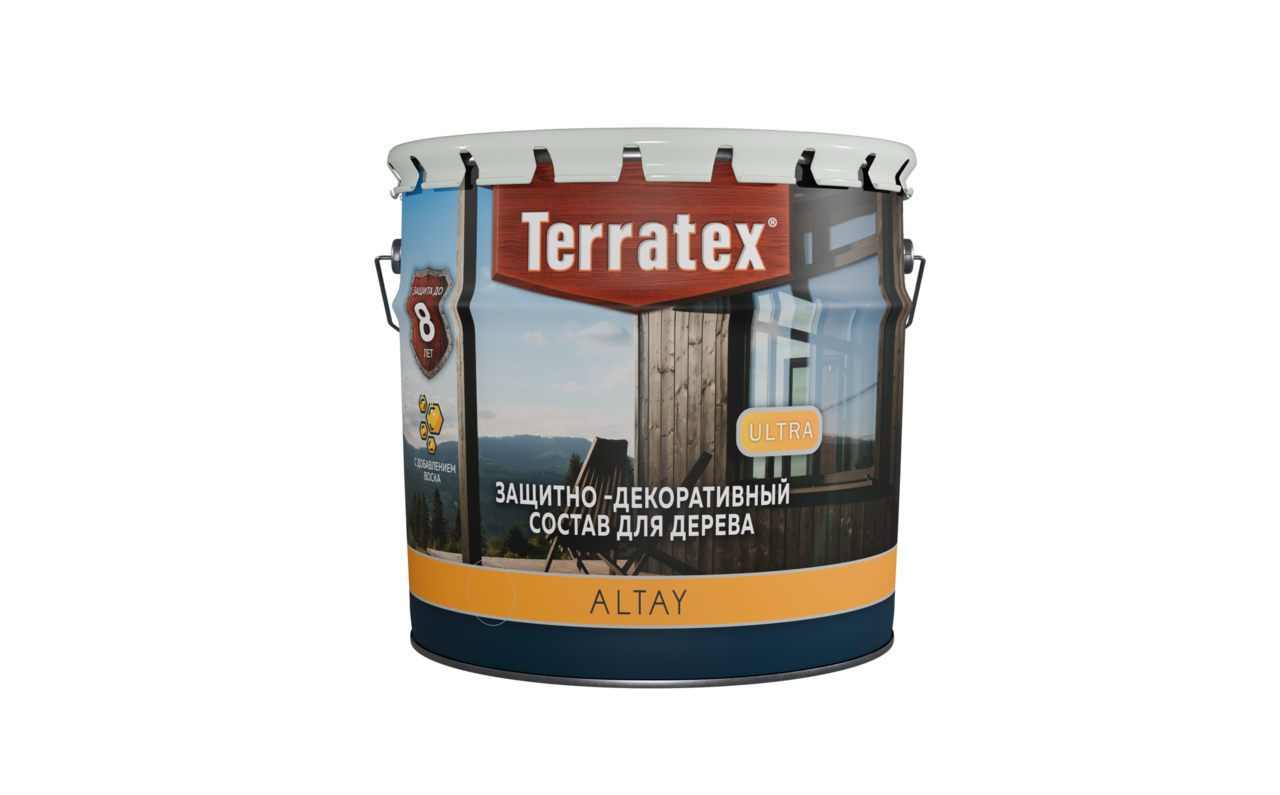 Деревозащитный декоративный воскосодержащий состав Terratex ULTRA Altay предназначен для наружных и внутренних работ. Состав образует на поверхности древесины воздухопроницаемое биозащитное влагоотталкивающее эластичное полимерное покрытие. Благодаря содержанию УФ-абсорбирующих материалов состав обеспечивает высокую степень защиты деревянных изделий, эксплуатирующихся в жестких погодных условиях. Сохраняет и усиливает текстуру древесины и придает ей желаемый декоративный оттенок.