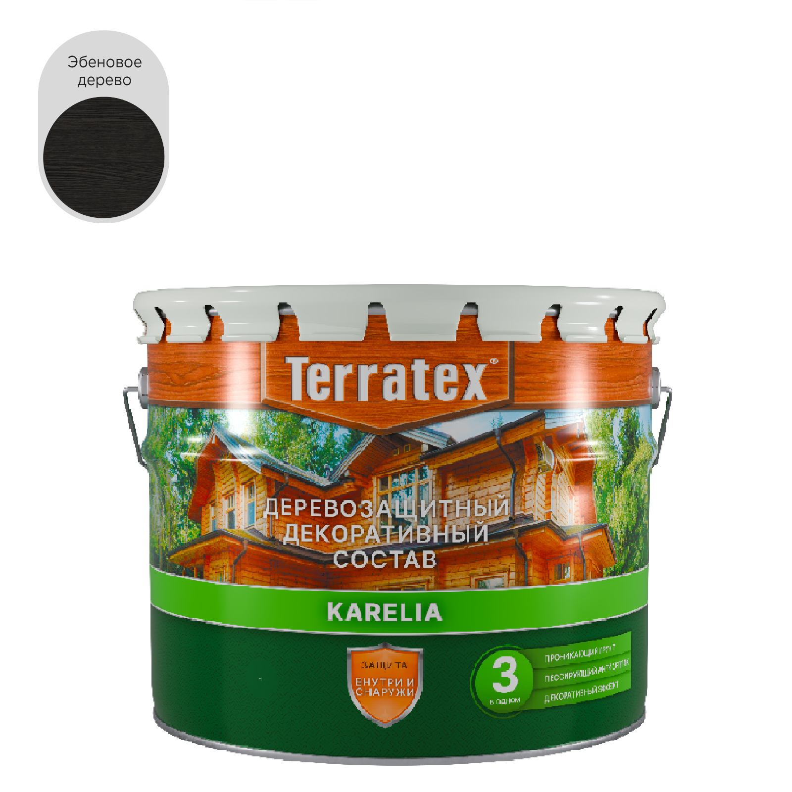 Деревозащитный декоративный состав Terratex Karelia предназначен для наружных и внутренних работ. Состав образует на поверхности древесины воздухопроницаемое биозащитное влагоотталкивающее эластичное полимерное покрытие. Благодаря содержанию УФ-абсорбирующих материалов состав обеспечивает высокую степень защиты деревянных изделий, эксплуатирующихся в жестких погодных условиях. Подчеркивает текстуру древесины и придает ей желаемый оттенок. Terratex применяется для покрытия любых наружных и внутренних стен, балконов, перил, плинтусов, заборов, садовых строений, фасадов домов, срубов, оконных рам и других конструкций из дерева, фанеры, ДСП и ДВП. Окончательный цвет финишного покрытия появляется после высыхания и зависит от типа древесины, качества подготовки поверхности и количества нанесенных слоев.