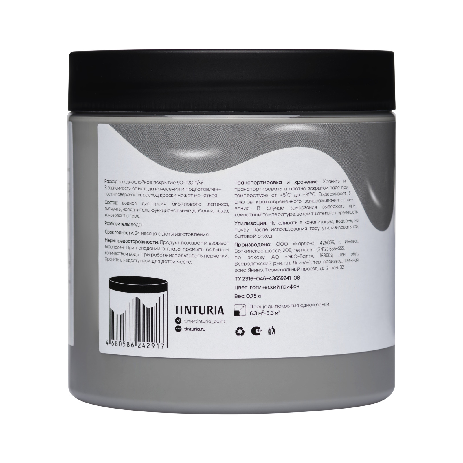 В палитре представлены 24 восхитительных дизайнерских оттенка: безлунная ночь, бриллиантовый белый, ванильное мороженое, воздушная пудра, голубая диадема, голубая лагуна, готический грифон, грецкий орех, гроздья сирени, еловый лес, жемчужное серебро, замок на скале, золото эльдорадо, кованое железо, кремовый торт, молочный шоколад, морской шторм, оливки Капулетти, персиковый смузи, топленое молоко, туманное утро, утренняя незабудка, фисташковый мусс, чайная роза.Расход на однослойное покрытие: 90-120 г/м², в зависимости от метода нанесения и подготовленности поверхности, расход краски может меняться. Наслаждайтесь визуальной эстетикой и качеством меловой краски TINTURIA! Через 14 дней после нанесения окрашенная поверхность выдерживает влажную уборку с применением неабразивных моющих средств.