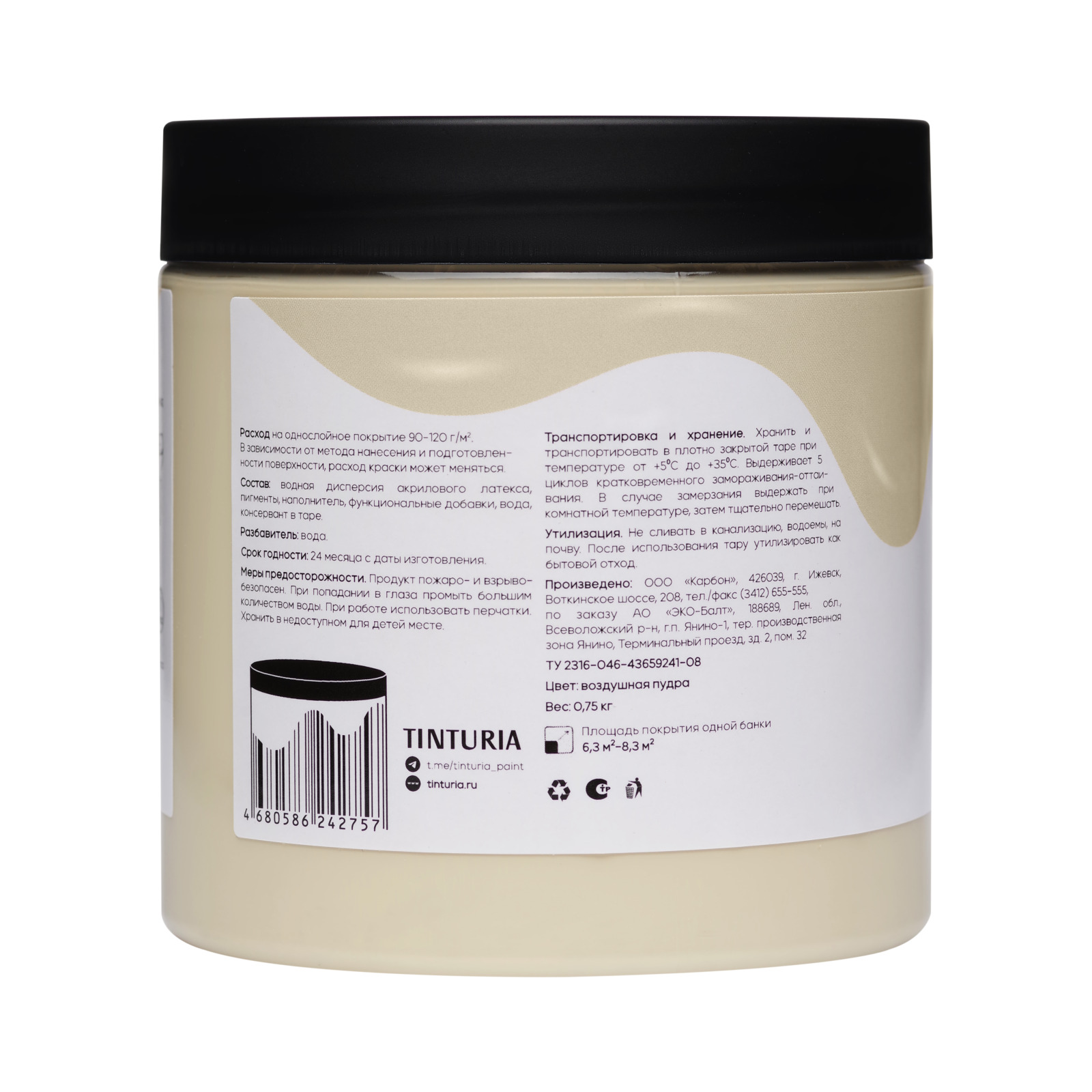 В палитре представлены 24 восхитительных дизайнерских оттенка: безлунная ночь, бриллиантовый белый, ванильное мороженое, воздушная пудра, голубая диадема, голубая лагуна, готический грифон, грецкий орех, гроздья сирени, еловый лес, жемчужное серебро, замок на скале, золото эльдорадо, кованое железо, кремовый торт, молочный шоколад, морской шторм, оливки Капулетти, персиковый смузи, топленое молоко, туманное утро, утренняя незабудка, фисташковый мусс, чайная роза.Расход на однослойное покрытие: 90-120 г/м², в зависимости от метода нанесения и подготовленности поверхности, расход краски может меняться. Наслаждайтесь визуальной эстетикой и качеством меловой краски TINTURIA! Через 14 дней после нанесения окрашенная поверхность выдерживает влажную уборку с применением неабразивных моющих средств.