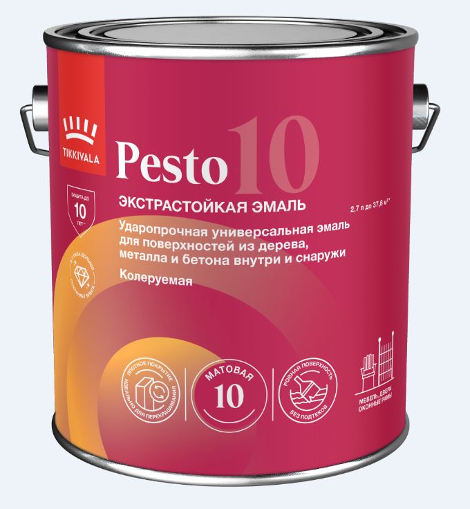 Универсальная матовая эмаль для наружных и внутренних работ. Стойкая, подходит для требующих частого мытья стен, потолков, мебели, дверей, металлических поверхностей. Колеруется в пастельные тона.