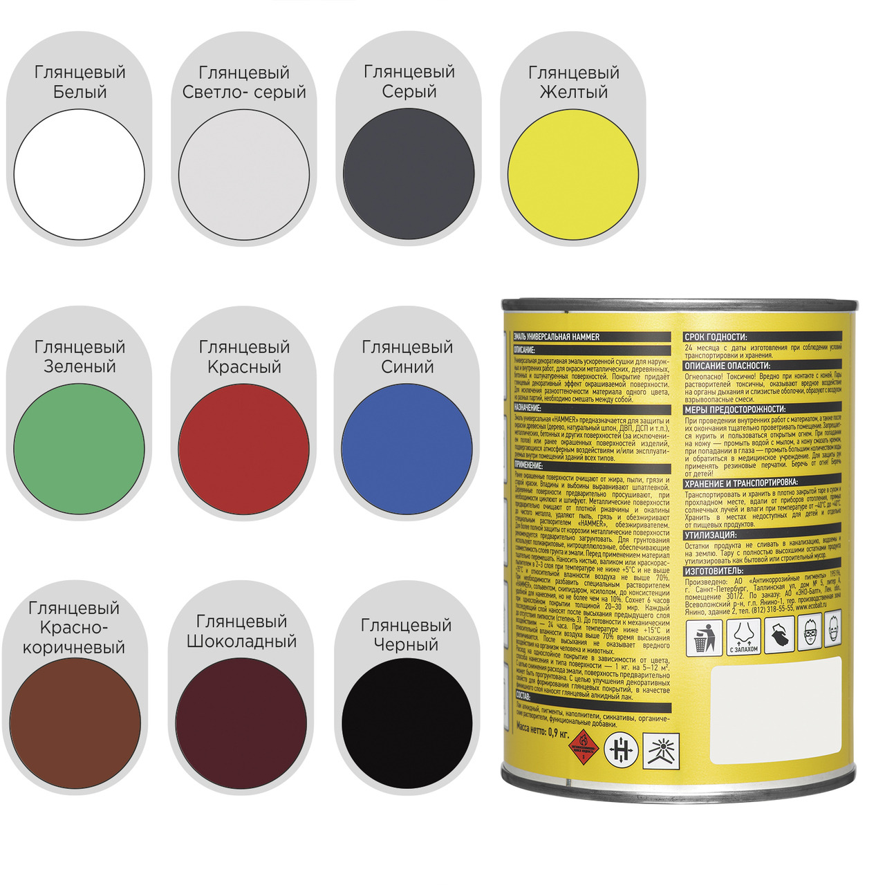 Эмаль универсальная HAMMER ускоренной сушки, глянцевая