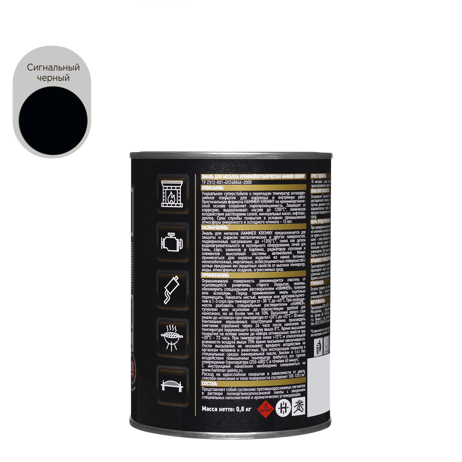 Эмаль для металла HAMMER KREMNY предназначается для защиты и окраски металлических и других поверхностей, подверженных нагреванию до +1200С°, таких, как детали водонагревательного и котельного оборудования, печей для бань, саун, каминов и барбекю, радиаторов отопления и элементов выхлопной системы автомобилей. Может применяться для окраски изделий из камня, бетонных, железобетонных, кирпичных, асбестоцементных поверхностей с целью придания им защитных свойств от высоких температур, воды, атмосферных осадков, агрессивных сред.
