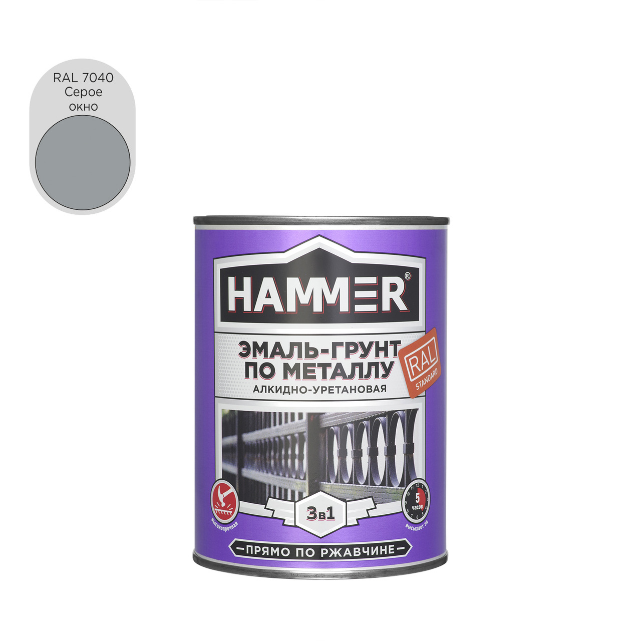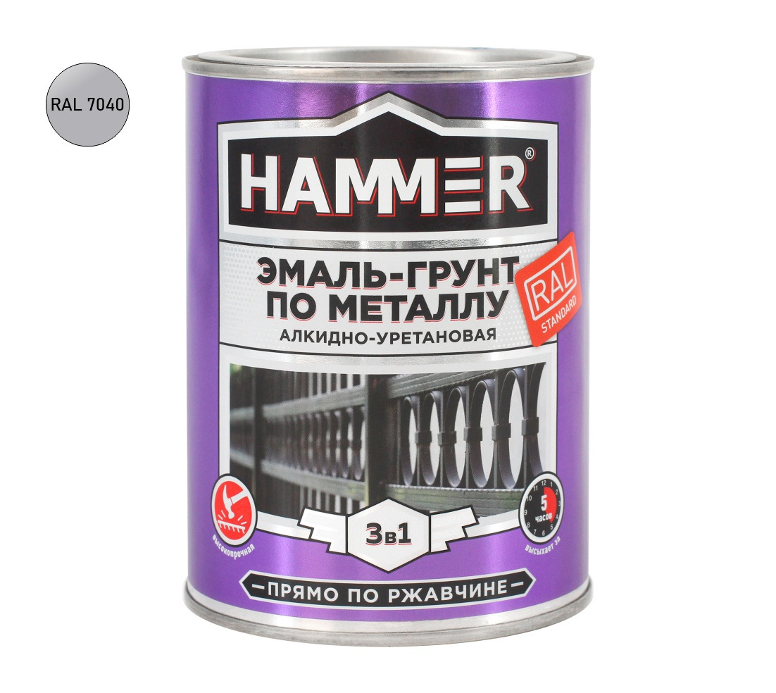 Эмаль-грунт по металлу HAMMER «3 в 1» алкидно-уретановая прямо по ржавчине. Для наружных и внутренних работ. Совмещает свойства преобразователя ржавчины, антикоррозийного грунта и эмали, колерована по RAL.