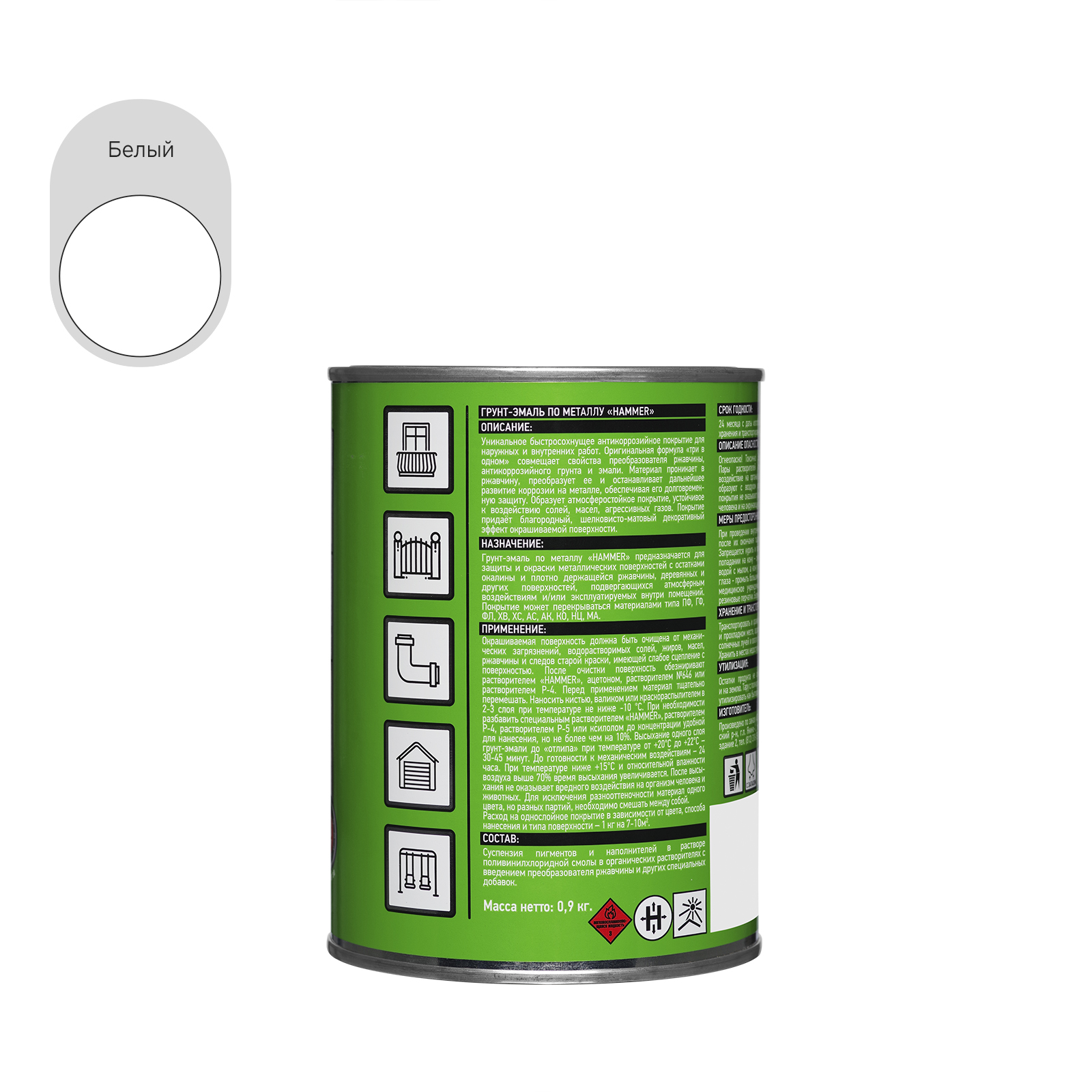 Грунт-эмаль по металлу HAMMER «3 в 1» быстросохнущая совмещает свойства преобразователя ржавчины, антикоррозийной грунтовки и эмали. Предназначена для наружных и внутренних работ по металлу и дереву.