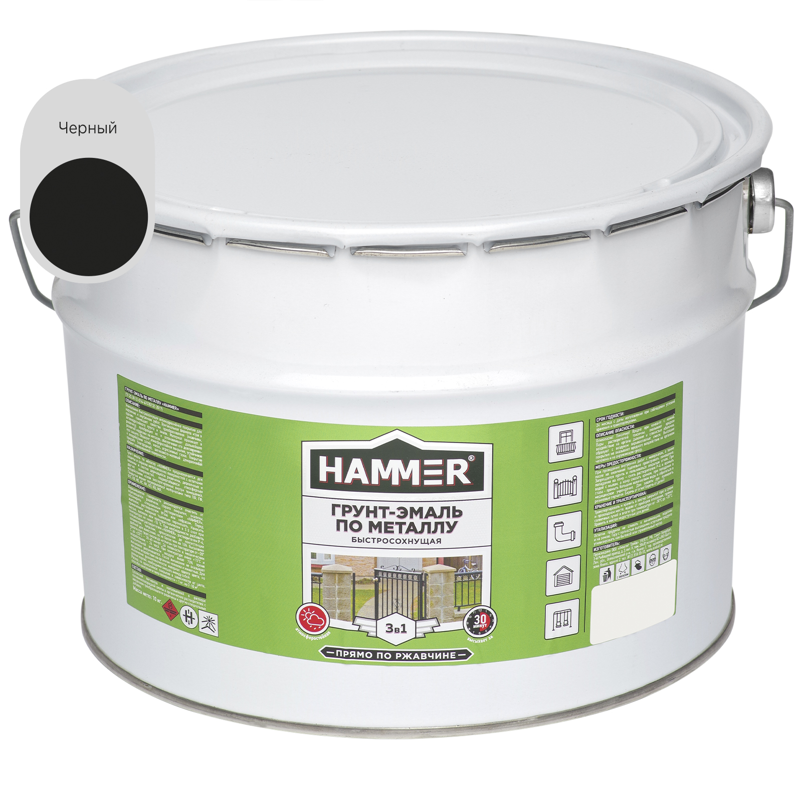 Грунт-эмаль по металлу HAMMER «3 в 1» быстросохнущая совмещает свойства преобразователя ржавчины, антикоррозийной грунтовки и эмали. Предназначена для наружных и внутренних работ по металлу и дереву.