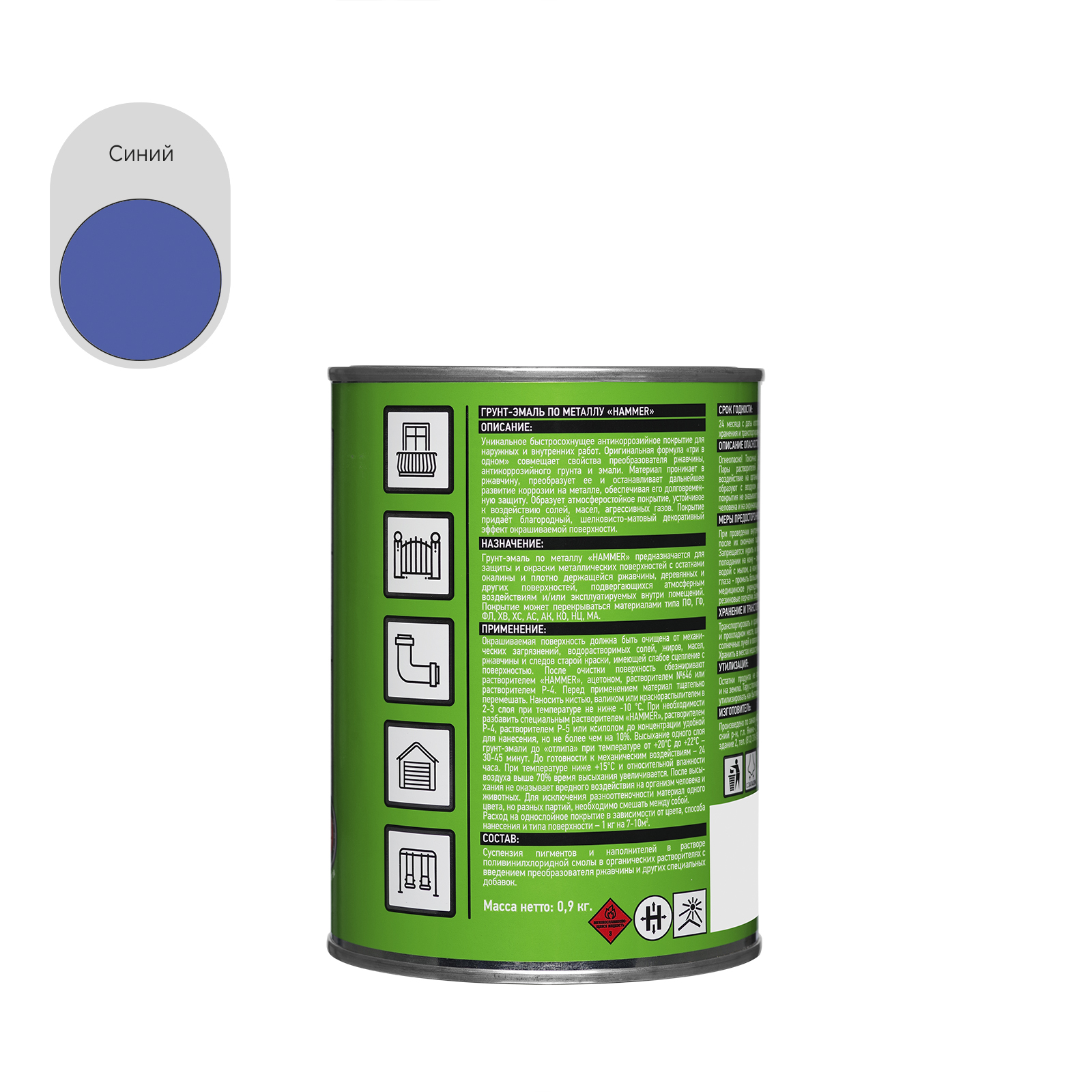 Грунт-эмаль по металлу HAMMER «3 в 1» быстросохнущая совмещает свойства преобразователя ржавчины, антикоррозийной грунтовки и эмали. Предназначена для наружных и внутренних работ по металлу и дереву.