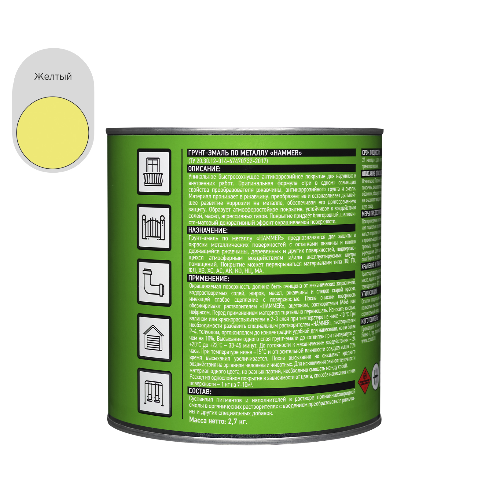 Грунт-эмаль по металлу HAMMER «3 в 1» быстросохнущая совмещает свойства преобразователя ржавчины, антикоррозийной грунтовки и эмали. Предназначена для наружных и внутренних работ по металлу и дереву.