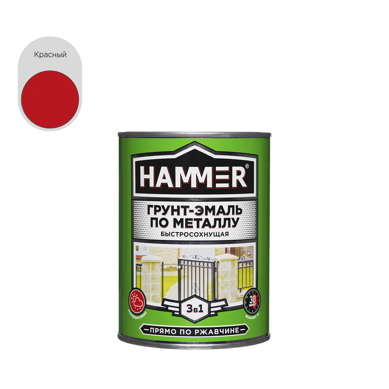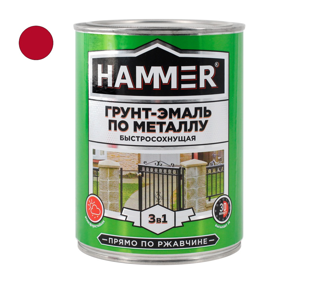 Грунт-эмаль по металлу HAMMER «3 в 1» быстросохнущая совмещает свойства преобразователя ржавчины, антикоррозийной грунтовки и эмали. Предназначена для наружных и внутренних работ по металлу и дереву.