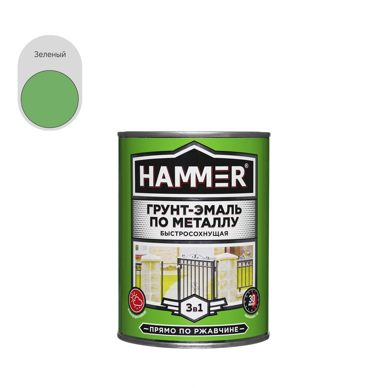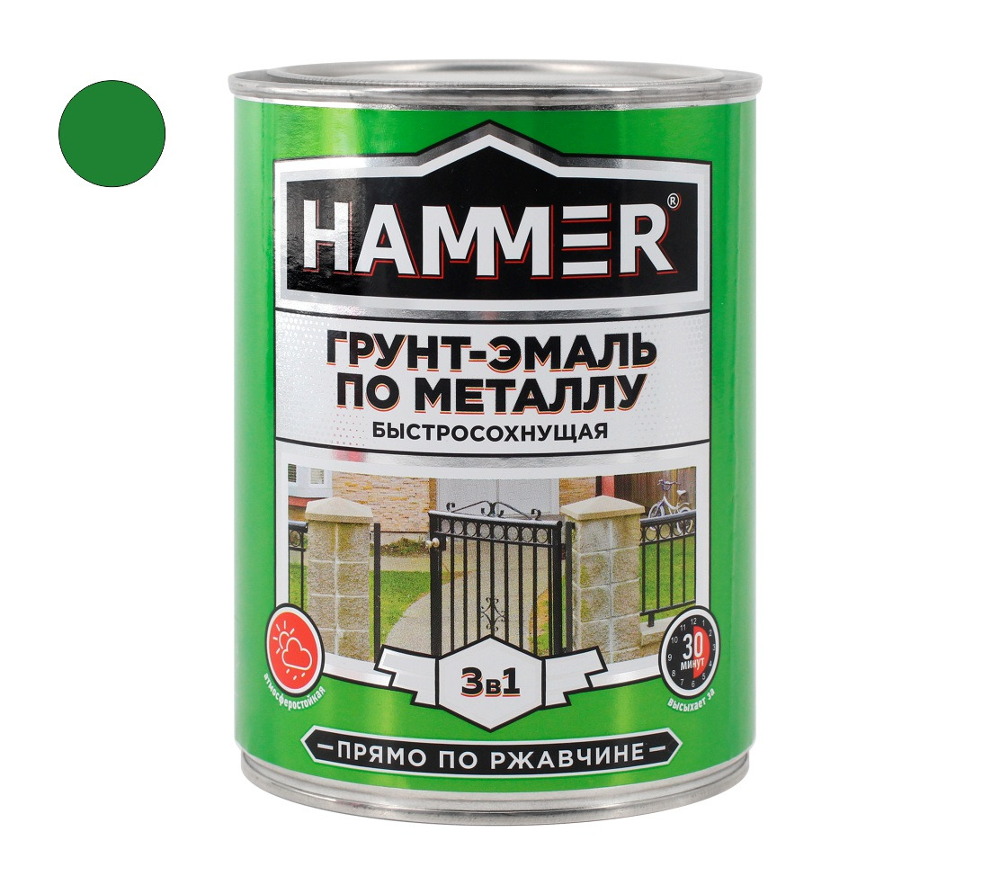 Грунт-эмаль по металлу HAMMER «3 в 1» быстросохнущая совмещает свойства преобразователя ржавчины, антикоррозийной грунтовки и эмали. Предназначена для наружных и внутренних работ по металлу и дереву.