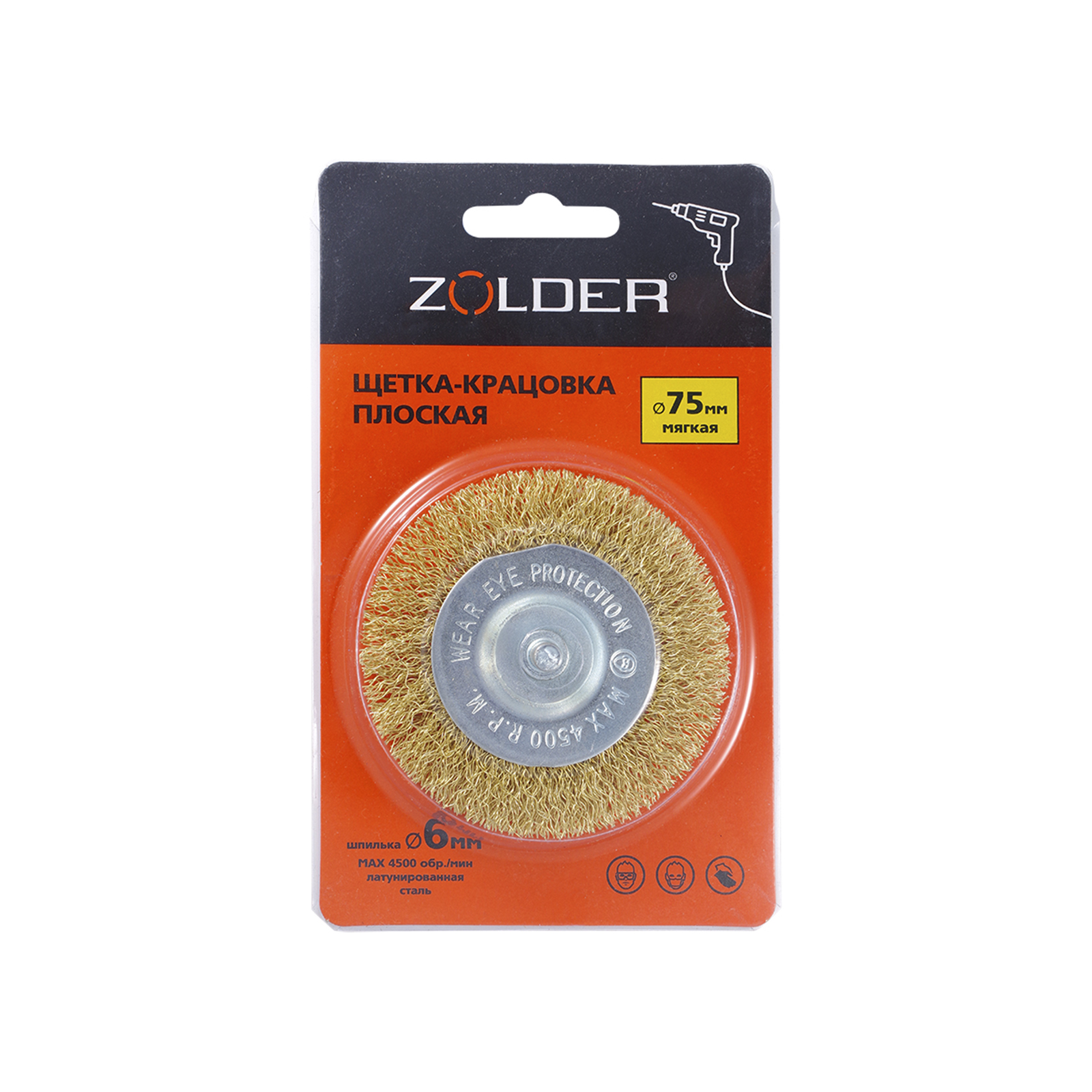 Плоская кордщётка ZOLDER с мягкой гофрированной проволокой для дрели. Подходит для зачистки ржавчины, краски, окалины и загрязнений в труднодоступных местах. Диаметр 75 мм, хвостовик 6 мм.