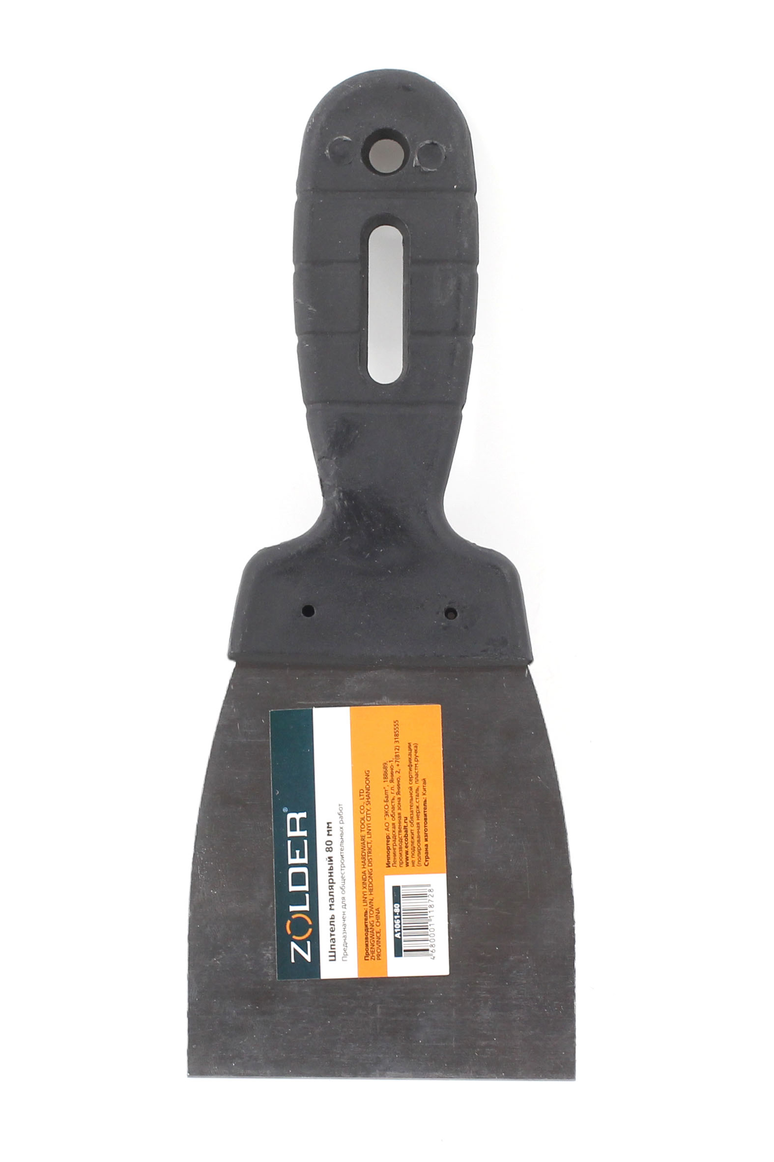 Малярный шпатель для заделки швов и трещин, для нанесения шпатлевки и других строительных растворов. Полотно шириной 80 мм из нержавеющей стали, пластиковая рукоять.