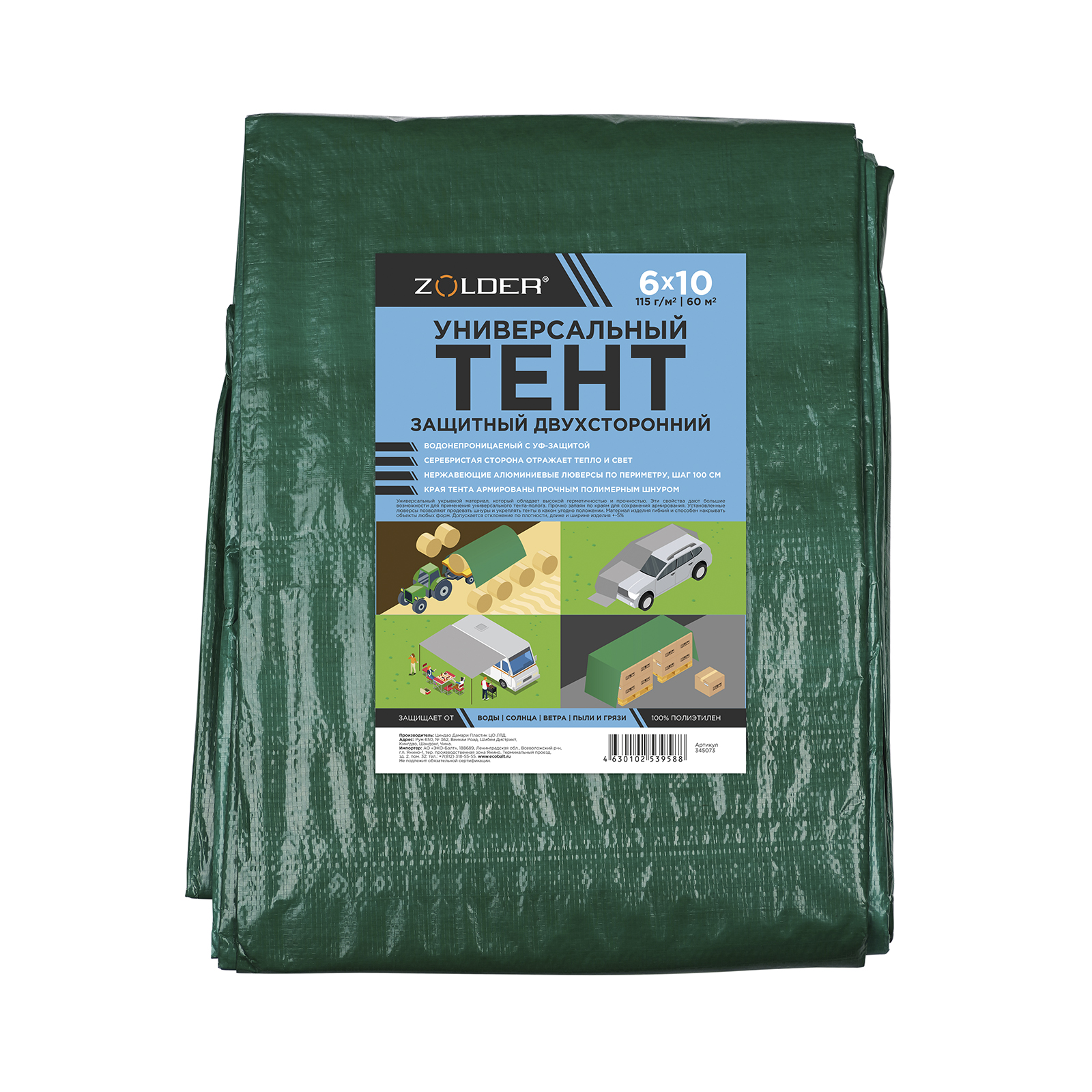 Тент Zolder — универсальный укрывной материал, который обладает высокой герметичностью и прочностью. Эти свойства дают большие возможности для применения универсального тента-полога. Прочно запаян по краям для сохранения армирования. Установленные по периметру люверсы позволяют продевать шнуры и укреплять тент в каком угодно положении на различных конструкциях. Материал изделия гибкий и способен накрывать объекты любых форм.