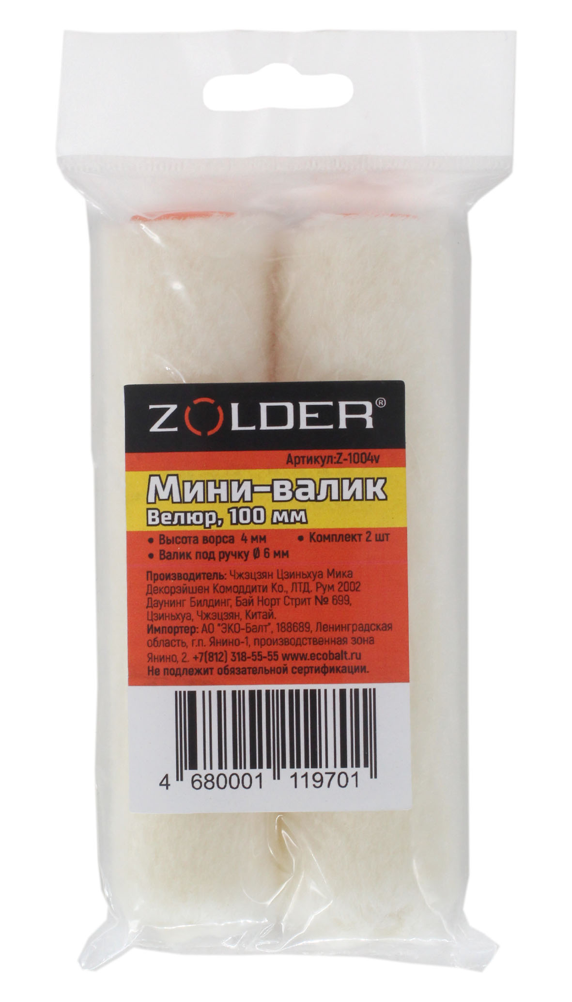 Набор из двух велюровых мини-валиков, поставляются без ручки, станок (бюгель с ручкой) приобретается отдельно. Валики предназначен для нанесения эмульсий и масляных красок, позволяют равномерно окрасить любую поверхность, без частого окунания в краску.