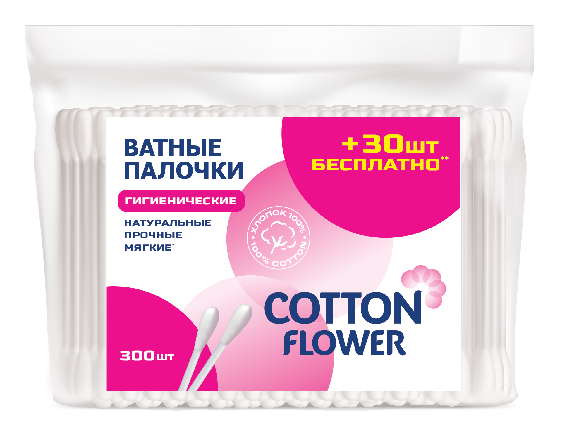 Косметические ватные палочки Cotton Flower отличаются плотной намоткой, отсутствием ворсинок и прочным стиком.