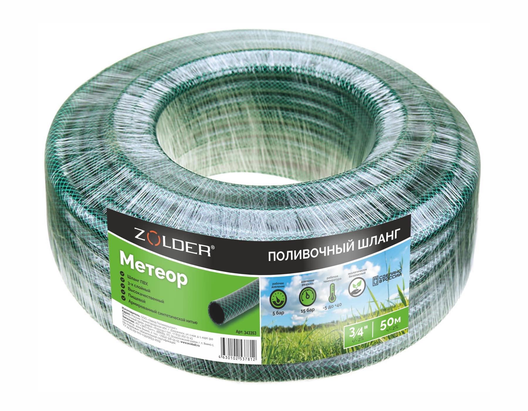 Шланг ПВХ Zolder Метеор для полива, перекачки и прочих работ с жидкостями, в том числе с пищевыми. Благодаря повышенным качественным показателям этот вид шланга имеет более высокие эксплуатационные характеристики (не заламывается и не перегибается). Трехслойный, армированный высокопрочной синтетической нитью: