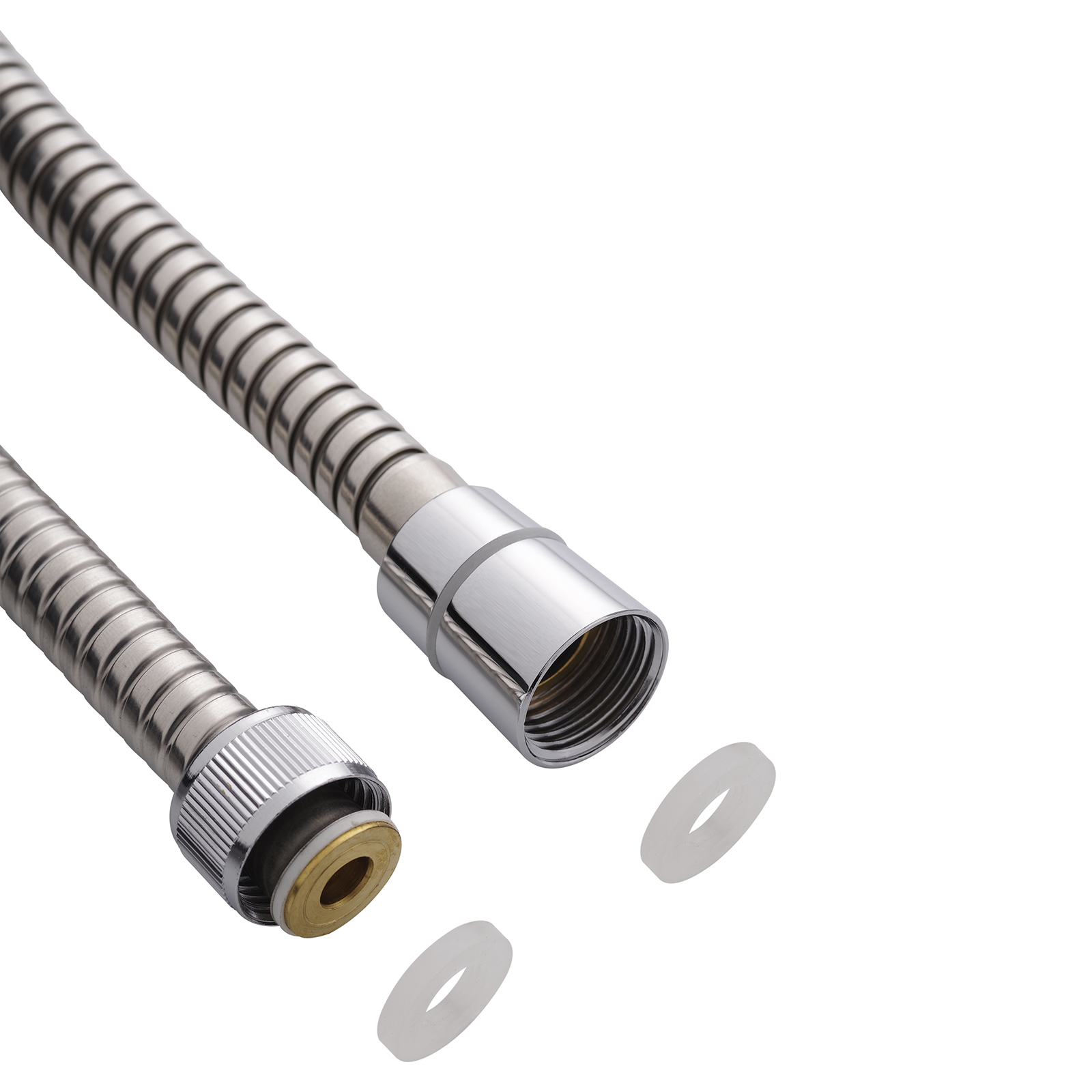 Шланг для душа Aqueduc, 150–180 см. Тип соединений: 1/2". Растягивающаяся оплетка, защита от перекручивания 360°, внутренний шланг: EPDM. Устойчив к химическим и механическим возд-м. Нержавеющая сталь
