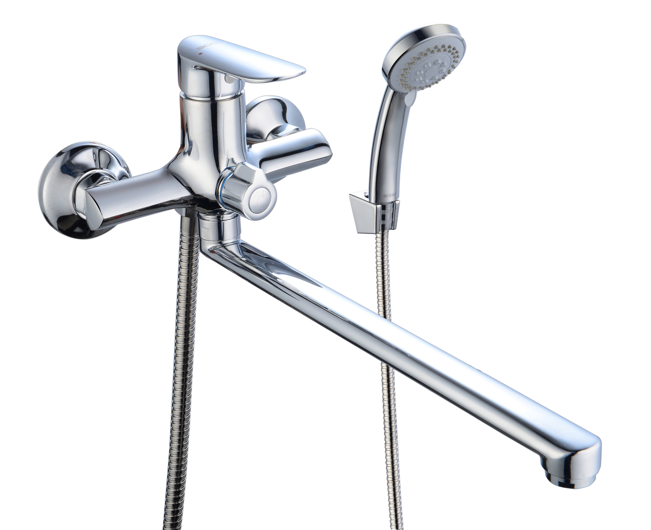 Смеситель BOOU для ванны и душа с плоским длинным поворотным изливом