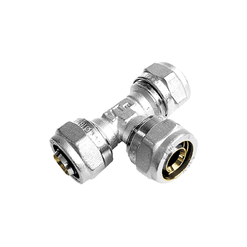 Фитинг обжимной – тройник латунный никелированный для соединения металлопластиковых (металлополимерных) труб. Имеются равнопроходные и переходные модели.
