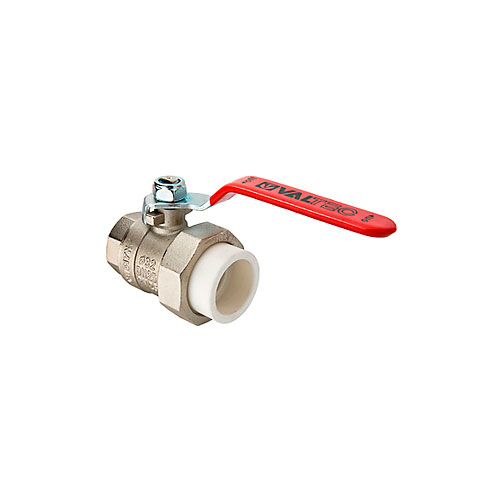 Полнопроходной шаровой кран для использования в качестве запорной арматуры на полипропиленовых трубопроводах систем водоснабжения, включая питьевое, отопления, технологических установок. Переход крана на полипропиленовую трубу осуществляется с помощью накидной гайки, соединение с трубопроводом – раструбной сваркой. Второй патрубок крана имеет внутреннюю резьбу. Рукоятка – флажковая, выполненная из оцинкованной стали с ПВХ-покрытием. Минимальный ресурс крана – 8 тыс. циклов. Максимальная рабочая температура – 90 °С, номинальное давление (PN) – 25 бар.