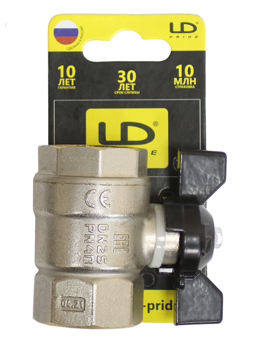 Полнопроходной шаровой латунный кран для водных сред, t рабочей среды: от -20 до + 150°С, давление: 4,0 МПа, гарантия: 10 лет.