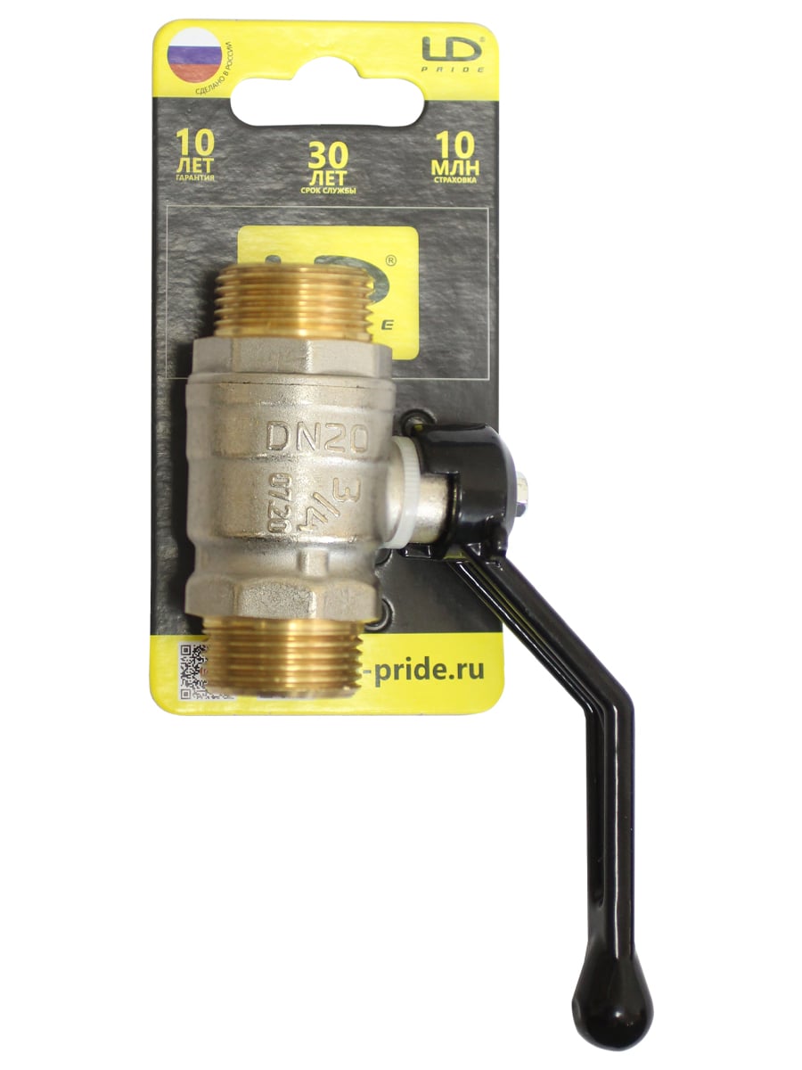 Полнопроходной шаровой латунный кран для водных сред, t рабочей среды: от -20 до + 150°С, давление: 4,0 МПа, гарантия: 10 лет.
