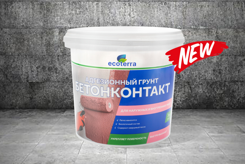 Новинка ассортимента — адгезионный грунт Бетонконтакт EcoterraПреимущества: