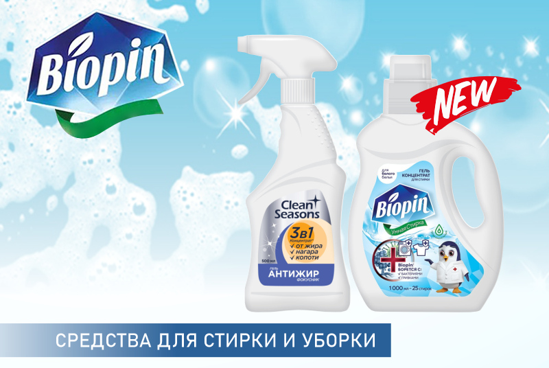Представляем новый бренд BIOPIN — средства для стирки и уборки.Преимущества геля для стирки BIOPIN: