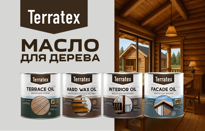 В продаже появились масла для дерева Terratex — экологически безопасные составы на натуральной основе, подходящие как для внутренних, так и для наружных работ.